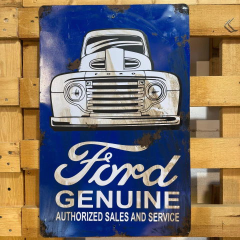 Cartel de chapa, fondo pintado, grafica de vinilo y simil oxido