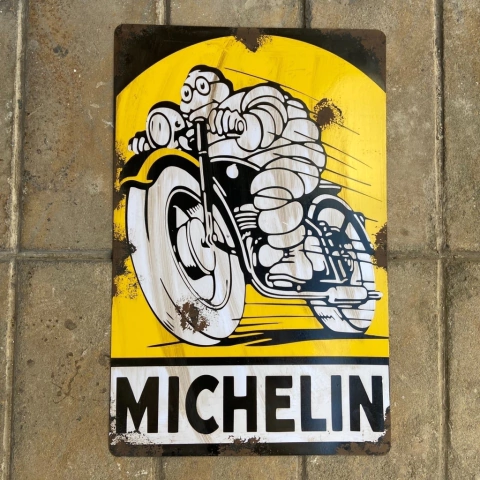Cartel de chapa, fondo pintado, grafica de vinilo y simil oxido
